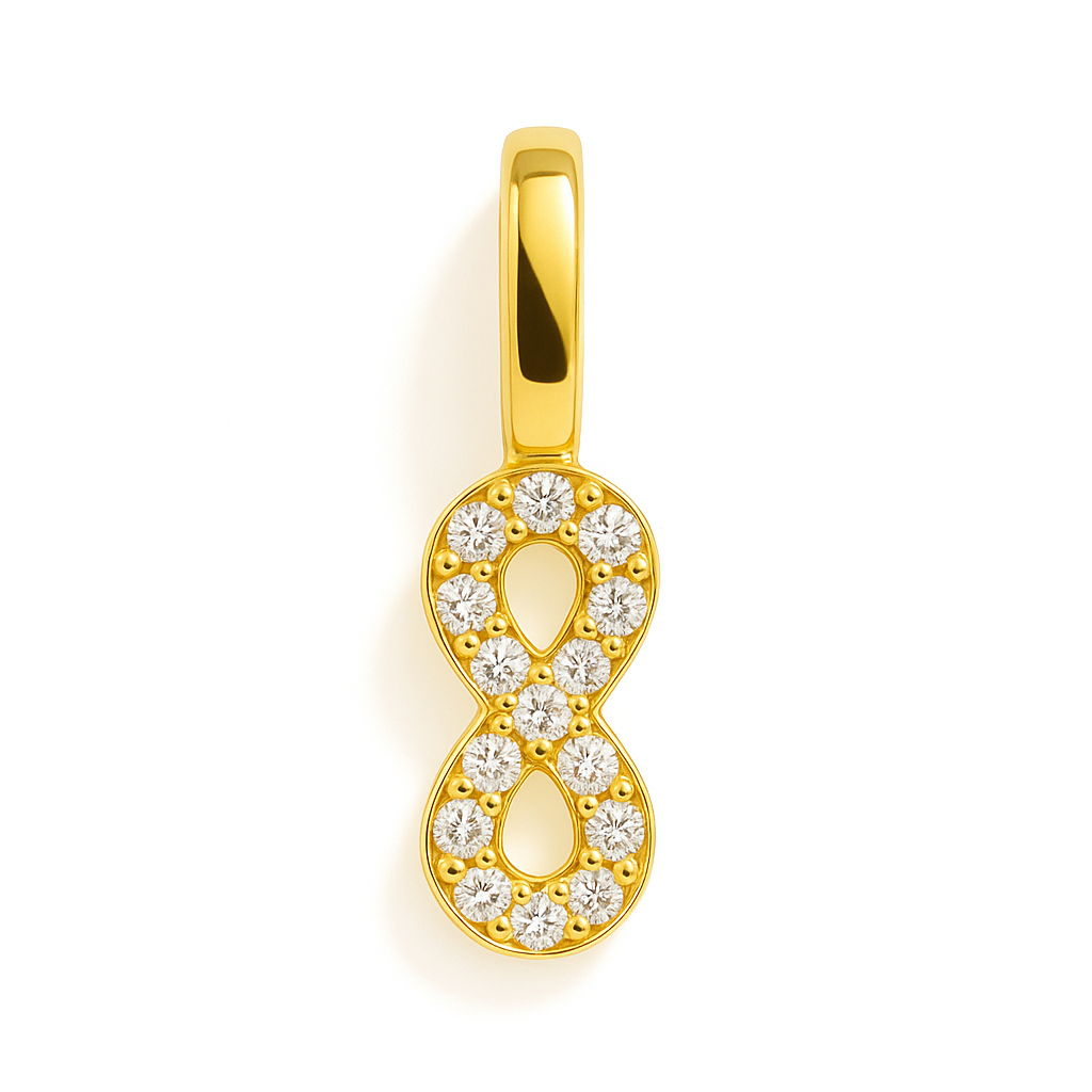 Onze Infinity Hanger combineert dit tijdloze symbool met fonkelende cubic zirconia-stenen die bij elke beweging prachtig het licht vangen.