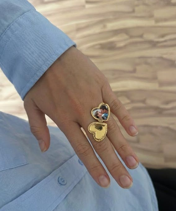 Deze Foto Medaillon Ring verandert herinneringen in iets tastbaars.